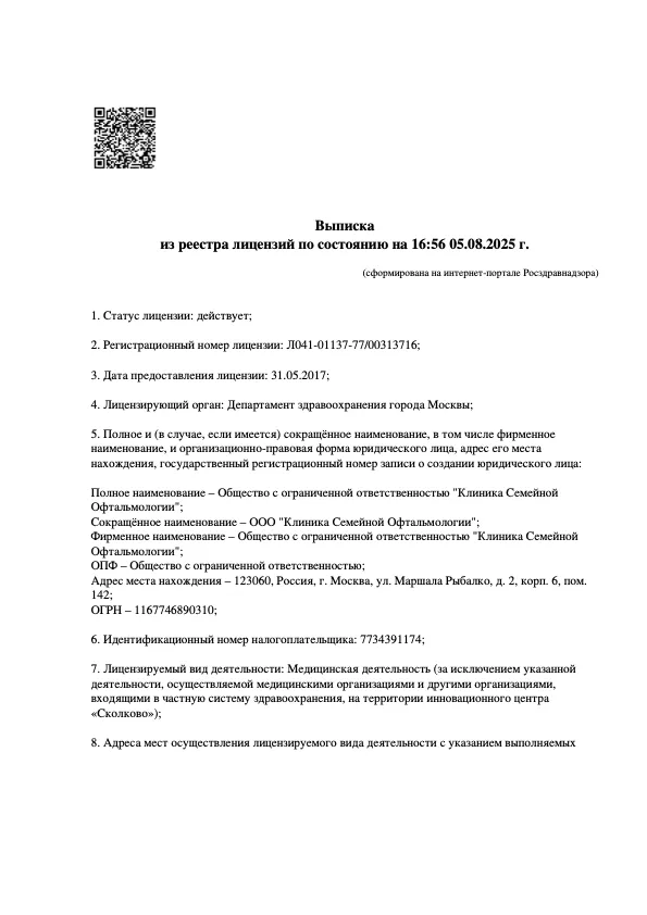 - Научный подход (клиника является учебной базой кафедры офтальмологии).